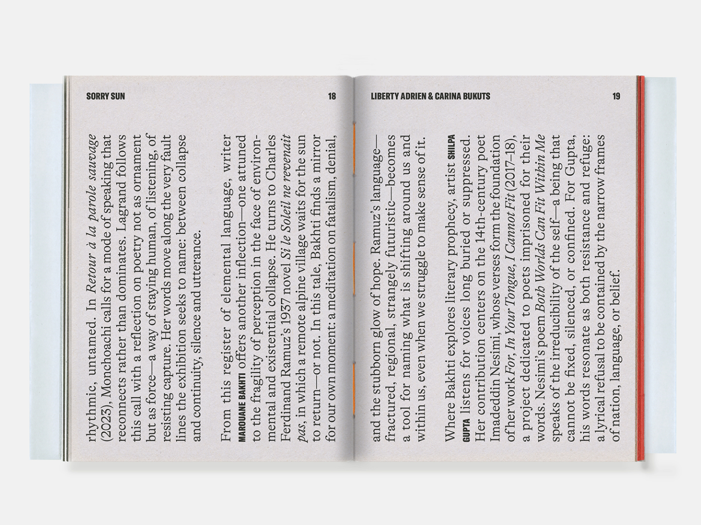 «Sorry Sun» de Liberty Adrien, Catalogue nouveau programme